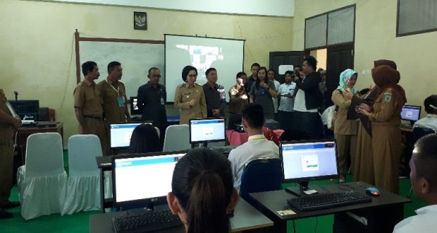 PortalBMR, BOLMONG – Bupati Bolmong Dra, Hj. Yasti Soepredjo Mokoagow. Senin, (23/04/2018) membuka dengan resmi Pelaksanaan Ujian Nasional Berbasis Komputer (UNBK), secara serentak di Kabupaten Bolaang Mongondow (Bolmong).