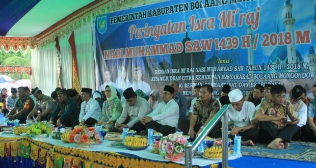 PortalBMR, BOLMONG – Pemerintah Kabupaten Bolaang Mongondow Bolmong). Jumat, (13/04/2018) melaksanakan kegiatan Isra Mi’raj 1439 Hijriyah bertempat di Lapangan Desa Bango Molunow Kecamatan Bolaang.