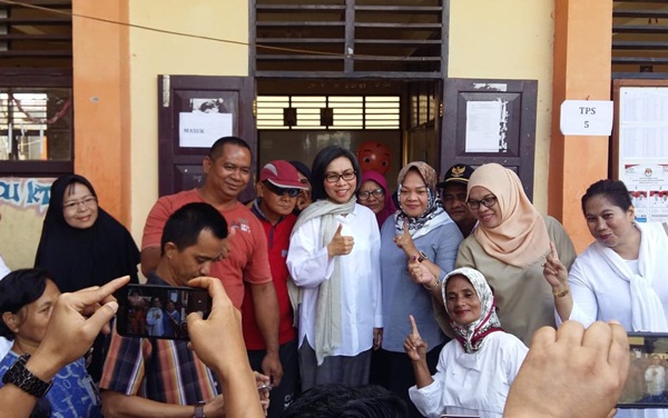 Usai melakukan pencoblosan Yasti langsung disambut oleh warga dan melakukan foto bersama. Kepada media yasti mengatakan