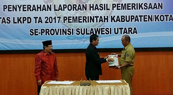 Penyerahan Laporan Hasil Pemeriksaan LHP ini diserahkan bersamaan 15 kabupaten/kota lainnya, dan disaksikan langsung Gubernur Sulawesi Utara Olly Dondokambay SE dan dihadiri Bupati dan Walikota para pimpnan serta anggoat DPRD Provinsi Sulut.