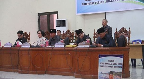Rapat paripurna yang digelar DPRD Bolmong dalam rangka pembicaraan tingkat II penetapan persetujuan atas Ranperda tentang laporan pertanggungjawaban (LPj) pelaksanaan APBD Tahun 2017, serta rapat paripurna penyampaian Kebijakan Umum Anggaran dan Prioritas Plafon Anggaran Sementara (KUA-PPAS).