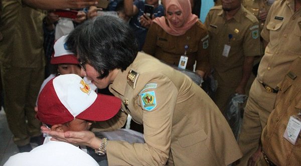 PortalBMR, Bolmong – Bupati Bolaang Mongondow (Bolmong) Dra, Hj. Yasti Soepredjo Mokoagow kembali menepati janjinya dalam kampenye untuk mengratiskan biaya pendidikan dan membagikan seragam sekolah dan perlengkapan bagi siswa-siswi SD, SMP, MTs yang ada di Kabupaten Bolaang Mongondow.