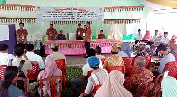 Diketahui pemilihan dan pemberian Hak Suara Calon Sangadi (Kepala Desa) Antar Waktu Desa Poyowa Kecil, turut dihadiri oleh Asisten Satu Pemerintah Kotamobagu, Inspektorat, Kabag Tapem, Kesbangpol, Camat, pihak Polsek dan Koramil, serta dihadiri oleg ribuan masyarakat Desa Poyowa Kecil.