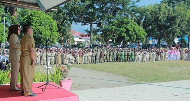 PortalBMR, KOTAMOBAGU – Walikota Kotamobagu Ir, Hj. Tatong Bara. Selasa (9/10/2018) memimpin Apel Kerja bersama seluruh jajaran Aparatur Pemerintah Daerah Kota Kotamobagu, bertempat di Lapangan Boki Hontinimbang Kotamobagu.