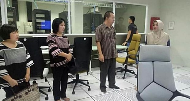 Sekretaris Diskominfo Kabupaten Minahasa Sonya Lolowang bersama rombongan langsung diarahkan menuju ruangan guna memantau langsung keberadaan Data Center dan Command Center yang dimiliki pemerintah Kota Kotamobagu.