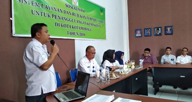 PortalBMR.com, KOTAMOBAGU- Pemkot Kota Kotamobagu mrlalui Dinas Sosial (Dinsos) menggelar sosialisasi Sestem Layanan dan Rujukan Terpadu (SLRT) penanggulangan kemiskinan di Kota Kotamobagu, di Ruang Rapat Dinsos, Rabu (16/01/2019).