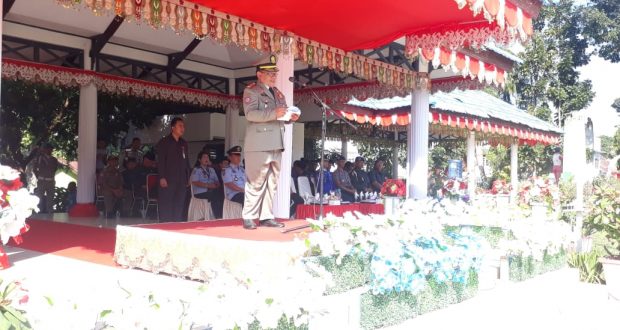 PortalBMR.com, KOTAMOBAGU- Wakil Walikota Kotamobagu Nayodo Koerniawan memimpin Upacara peringatan HUT ke 100 Pemadam Kebakaran (Damkar), HUT ke 69 dan SatpolPP dan HUT Linmas ke 57 tahun 2019, di Lapangan Boki Hotinimbang Kotamobagu, Senin (25/03/2019).