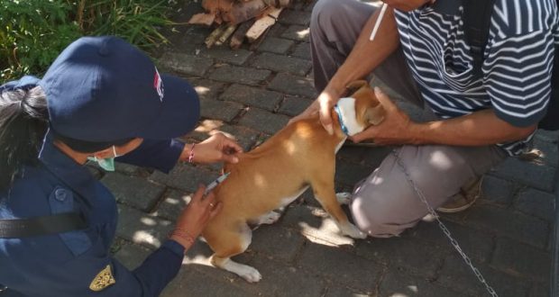 PortalBMR.com, KOTAMOBAGU- Dinas Perikanan, Pertanian dan Peternakan (Dispertanak) Kota Kotamobagu rutin turun ke lapangan untuk melakukan vaksinasi rebies pada hawan Anjing.