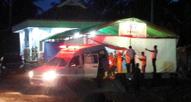Jenasah tiba di Posko Postmorten RSUD Kotamobagu  pukul 18:30 Wita  dan langsung diserahkan ke tim DVI.