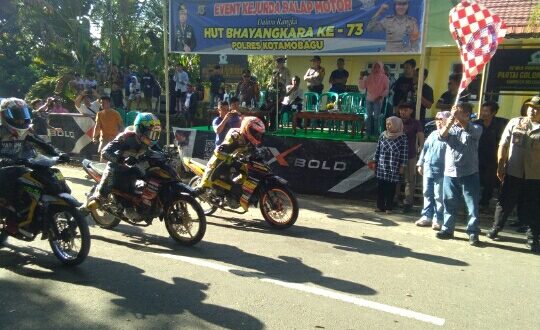 PortalBMR.com, KOTAMOBAGU- Kejuaraan Daerah (Kejurda) Balap Motor dalam rangka Hari Ulang Tahun (HUT) Ke 73 Bayangkara resmi dibuka di sirkuit Paloko Kinalang Kelurahan Kotobangon, Jumat (28/06/2019).