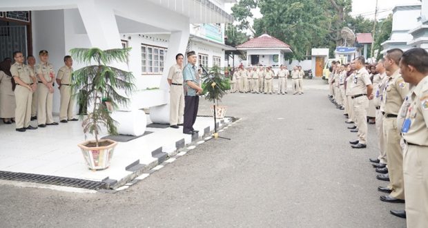 PortalBMR, KOTAMOBAGU – Sekretaris Daerah Kota Kotamobagu Sande Dondo. Senin, (01/07/2019) memimpin apel pagi di halaman kantor walikota, apel tersebut dirangkaikan dengan perpisahan Asisten Pemerintah Setda Kotamobagu Drs Nasrun Gilalom yang sudah memasuki masa purna bakti.