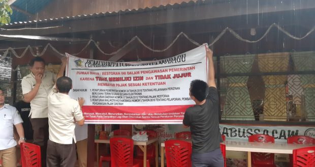 PortalBMR.com ,KOTAMOBAGU- Badan Pengelolaan Keuangan Daerah (BPKD) bersama Satuan Polisi Pamong Praja (SatpolPP) melakukan tindakan tegas dengan memasang spanduk peringatan kepada sejumlah usaha Rumah Makan yang belum mengoperasikan mesin E-Tax.