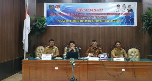 PortalBMR, BOLMONG – Program pemberantasan korupsi terintegrasi. Pemerintah Kabupaten Bolaang Mongondow (Bolmong) bekerjasama dengan Komisi Pemberantasan Korupsi (KPK) melakukan sosialisasi wajib pajak dalam rangka optimalisasi pendapatan daerah, serta monitoring dan evaluasi program pemberantasan korupsi terintegrasi.