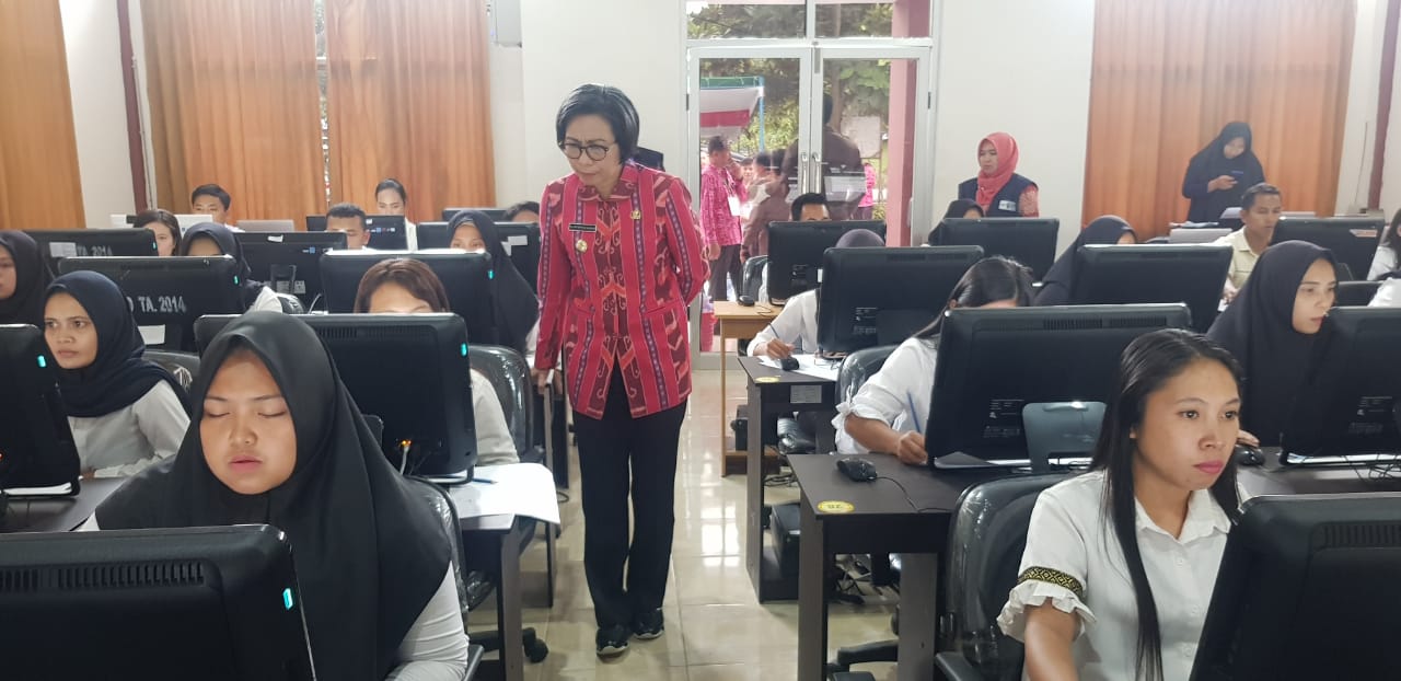 Terpantau, bupati yasti langsung menuju ruangan memberi motivasi dan menyaksikan langsung peserta yang sedang melaksanakan tugas tes SKD CPNS diruangan yang telah disediakan oleh BKPP.
