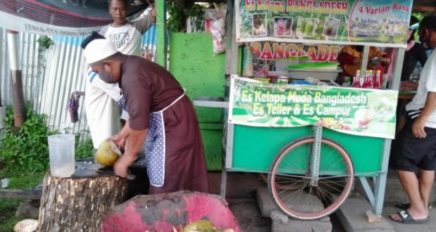 Terpantau sejak ramadhan, Kios yang diberi nama Es Kelapa Muda Bangladesh ini, ramai dikunjungi warga masyarakat Kota Kotamobagu untuk dijadikan takjil berbuka puasa.