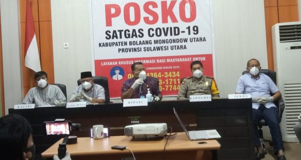 PortalBMR, BOLMUT – Pemerintah Kabupaten (Pemkab) Bolaang Mongondow Utara (Bolmut) Jumat, (01/05/2020) menggelar Konferensi Pers berkaitan dengan ditetapkannya status pertama warga Kabupaten Bolmut yang terinveksi Covid-19