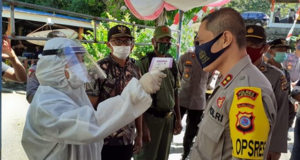 Sebelumnya Kapolres bersama rombongan disambut oleh masyarakat dengan tarian adat Bolmong, kemudian kapolres langsung kunjungi Pos Hansip, Rumah Isolasi, lokasi perkebunan, lapangan Bulutangkis dan Masjid.