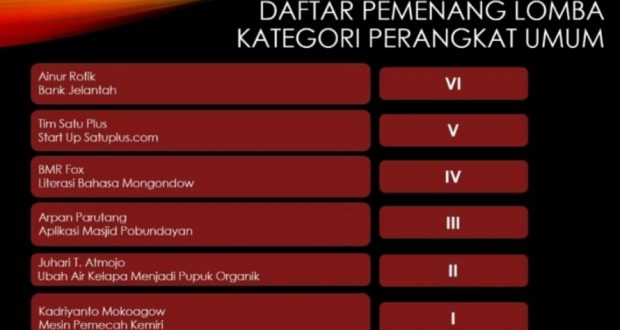 “Sebagai juri kami sangat mengapresiasi para peserta yang begitu inovatif. Banyak ide-ide cemerlang yang dimunculkan, sehingga sangat sulit bagi kami untuk menentukan siapa yang paling terbaik. Semoga inovasi yang keluar sebagai pemenang, bisa memberikan kontribusi positif bagi daerah yang sama-sama kita cintai ini,” ucap salah satu tim juri Magdalena Wullur.