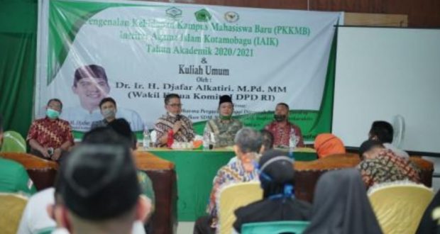 PortalBMR, KOTAMOBAGU – Wakil Wali Kota (Wawali) Kotamobagu Nayodo Koerniawan, S.H., menghadiri penutupan kegiatan Pengenalan Kehidupan Kampus Mahasiswa Baru (PKKMB) Institut Agama Islam Kotamobagu (IAIK) tahun akademik 2020/2021, Sabtu (29/08/2020)