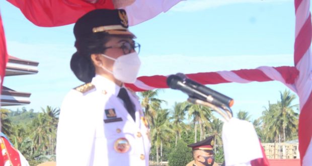 Bupati Bolmong Dra, Hj Yasti Soepredjo Mokoagow memimpin Upacara bendera yang dmulai pukul 07.30 Wita bertempat di lapangan Pemkab Bolmong belangsung sangat sederhana dan penuh hikmat.
