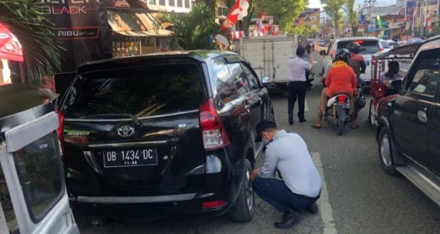 “Kendaraan yang ditemukan parkir bukan pada tempatnya, kami ambil tindakan dengan menggembosi ban kendaraan,” ujar Awi sapaan akrabnya.