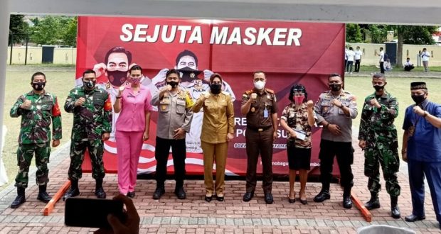 Gerakan Sejuta Masker dilaksanakan melalui Video Converence (Vidcon) dihalaman Mapolres Kotamobagu turut dihadir Wali Kota Kotamobagu Ir. Tatong Bara turut, Kapolres Kotamobagu, Dandim 1303, perwakilan partai politik (Parpol), Kepala Jasaraharja cabang Kotamobagu, KPU Kotamobagu.