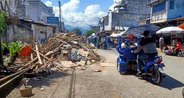 “saya sudah sampaikan ke kabid agar segera ditertibkan, jangan ada material yang menumpuk dibadan jalan. Saat ini mereka sudah turun kelapangan bersama Pol-PP untuk menghimbau, agar pemilik toko segera mengangkut matrial mereka yang ada dibadan jalan”, jelas Nasli Paputungan.