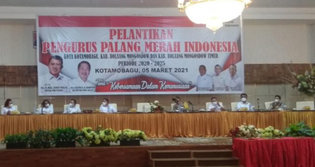 PortalBMR, KOTAMOBAGU – Mewakili Wali Kota Kotamobagu, Sekretaris Daerah (Sekda) Kota Kotamobagu, Ir Sande Dodo MT. Jumat, (5/03/ 2021) menghadiri pelantikan pengurus Palang Merah Indonesia (PMI) Kota Kotamobagu, Kabupaten Bolaang Mongondow serta Kabupaten Bolaang Mongondow Timur.