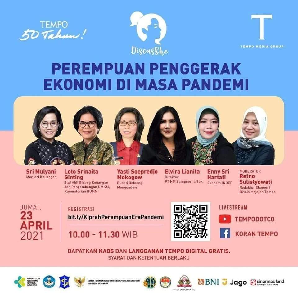 Hal tersebut nampak dalam acara yang digelar Tempo Media Group. Jumat (23/4/2021) Yasti Soepredjo menjadi narasumber pada acara diskusi bertajuk ‘Perempuan Penggerak Ekonomi di Masa Pandemi’. Acara tersebut digelar Tempo Media Group live streaming Youtube Tempotco, Facebook Koran Tempo dan saluran digital tvTempo, dalam rangka untuk memperingati hari Kartini.