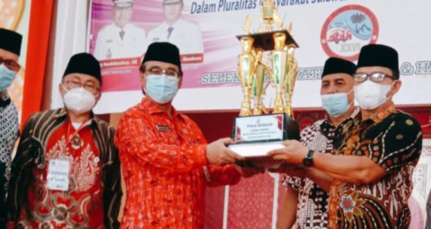 Trophy sebagai juara umum, diterima oleh Kepala Bagian Kesra Kotamobagu Hamdan Mokoagow, dan diserahkan oleh Asisten II Pemprov Sulut Praseno Hadi, Kamis (24/06/2021). Dalam kesempatan itu, Hamdan mengucapkan terima kasih atas kerja keras rombongan kafilah Kotamobagu, sehingga bisa menjadi juara umum di ajang STQH tingkat Sulut.