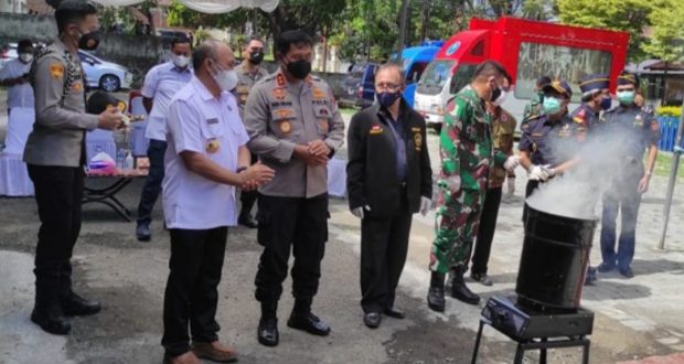 Pemusnahan barang bukti tanaman ganja ini dilaksanakan di halaman Kantor BNN Provinsi Sulawesi Utara, Kamis (29/7/2021) pagi, dihadiri oleh Kapolda Sulawesi Utara Irjen Pol Nana Sudjana, Kepala BNN Provinsi Sulut Brigjen Pol V. J. Lasut, Danrem 131/Santiago Brigjen TNI Prince M. Putong, Kabid Humas Polda Sulut Kombes Pol Jules Abraham Abast, Dirresnarkoba Kombes Pol Indra Lutrianto Amstono dan stakeholder terkait lainnya.
