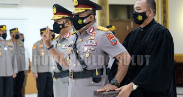 Upacara sertijab dan pelantikan ditandai dengan pengambilan sumpah jabatan oleh Kapolda Sulut dilanjutkan dengan penandatanganan Berita Acara Sertijab dan Pakta Integritas.