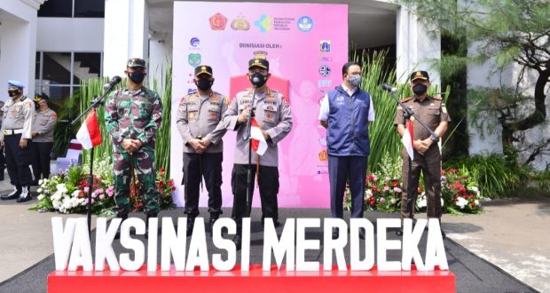 “Kami laksanakan Vicon dengan para Kapolda pada tanggal 17 Agustus, Insya Allah kami dibantu dengan kerjasama rekan-rekan baik Pemda, TNI serta seluruh relawan akan mampu capai target 70 persen untuk vaksin bersama,” kata Sigit di Polda Metro Jaya, Minggu (1/8/2021).