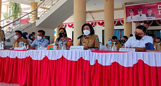 “Kami diberikan mandat oleh Kementerian Sekretariat Negara (Kemensetneg) untuk menyampaikan hasil rapat baik itu rapat kabinet, rapat secara virtual, yang dilakukan oleh Presiden dengan Menteri Kabinet, Gubernur dan Bupati/Walikota di bulan Juli yang lalu,” kata Bupati Yasti Soepredjo Mokoagow (YSM).