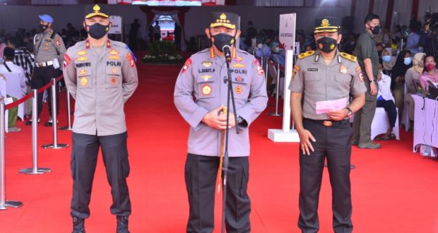 PortalBMR, SULUT – Kapolri Jenderal Listyo Sigit Prabowo menghadiri acara Vaksinasi massal dan penyerahan bantuan sosial yang diselenggarakan Alumni Akademi Kepolisian (Akpol) 1997 bataliyon Wira Pratama di Gedung eks Mapolres Bandara Soetta, Tangerang, Banten, Senin (20/9/2021).
