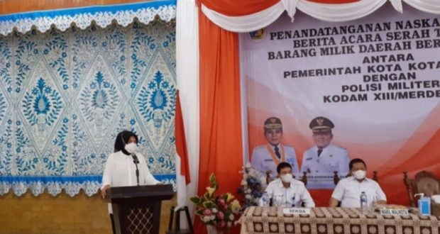 PortalBMR, KOTAMOBAGU – Wali Kota Kotamobagu Ir, Hj. Tatong Bara. Rabu, (8/9/2021) resmi melakukan penandatanganan naskah hibah, berita acara, serah terima barang milik daerah berupa tanah antara Pemerintah Kota Kotamobagu dengan POM Kodam XIII/Merdeka, bertempat di Aula Rumah Dinas (Rudis) wali Kota Kotamobagu.