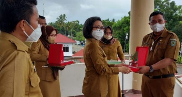 PortalBMR, BOLMONG – Bupati Bolaang Mongondow (Bolmong) Yasti Soepredjo Mokoagow menyerahkan penghargaan kepada tiga kepala Satuan Kerja Perangkat Daerah (SKPD) karena meraih nilai tertinggi atas penilaian akselerasi yang dilakukan Inspektorat selama tahun anggaran 2021.