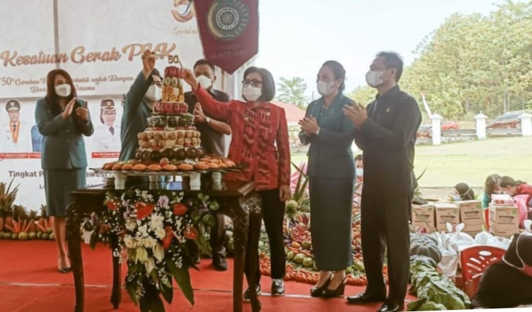 Ketua TP PKK Sulut, Ritamaya Dondokambey Tamuntuan memberikan apresiasi kepada Bupati Yasti Soepredjo Mokoagow dan Wakilnya Yanny Ronny Tuuk, dan panitia atas terselenggaranya HKG ke 50 ini.