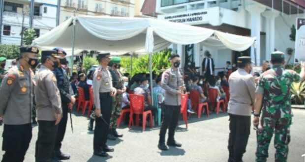 PortalBMR, SULUT – Kapolda Sulawesi Utara Irjen Pol Mulyatno memantau langsung pelaksanaan pengamanan oleh anggota Polri pada ibadah Jumat Agung yang dilaksanakan di sejumlah Gereja yang ada di Kota Manado, Jumat (15/4/2022).