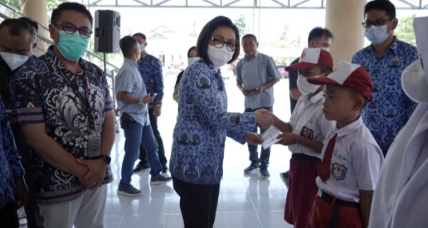 PortalBMR,Bolmong – Bupati Bolaang Mongondow (Bolmong), Yasti Soepredjo Mokoagow menyerahkan bantuan beasiswa tingkatan SD, SMP, SMA dan jenjang Mahasiswa melalui program PT. JResource Bolaang Mongondow (JRBM). Selasa, (17/5/2022) di pendopo Kantor Bupati.