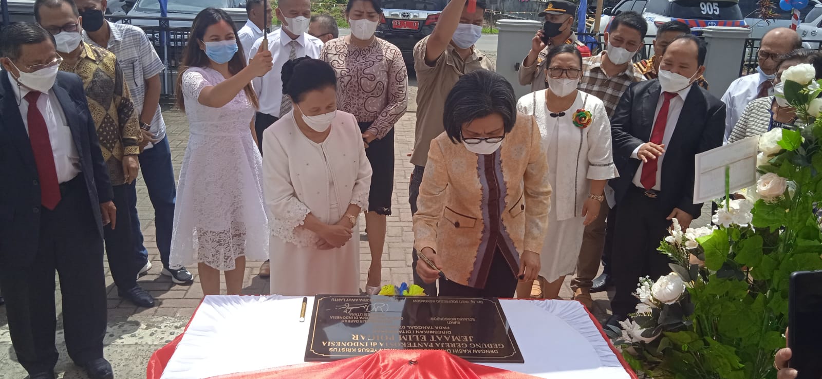 PortalBMR, Bolmong – Bupati Bolaang Mongondow (Bolmong), Yasti Soepredjo Mokoagow meresmikan gedung Gereja Pentakosta di Indonesia (GPDI) Elim desa Poigar II. Sabtu, 7 Mei 2022.