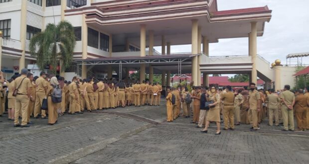 “Untuk itu bagi ASN yang hari ini tidak masuk kerja tanpa alasan yang jelas, maka akan dikenakan sanksi berupa pemotongan TPP sebesar 50 persen, untuk itu saya meminta kepala BKPP untuk segera merekapitulasi para ASN yang tidak masuk kerja, ” Tegasnya.