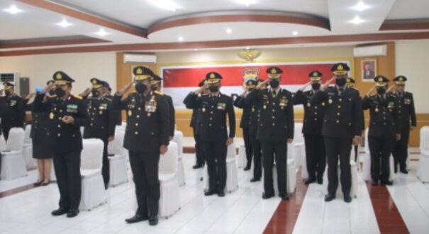 PortalBMR, SULUT – Kapolda Sulawesi Utara (Sulut) Irjen Pol Mulyatno bersama Wakapolda dan seluruh Pejabat Utama mengikuti upacara peringatan Hari Lahir Pancasila, secara virtual melalui video conference, Rabu (1/6/2022) pagi, di ruang Tribrata Mapolda Sulut.