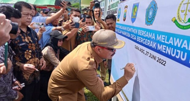 Penjabat Bupati Bolmong dalam sambutannya berterima kasih kepada masyarakat dari kedua desa yang telah mendukung program BNN Bolmong dan ditetapkan sebagai desa percontohan, desa model bersih narkoba.
