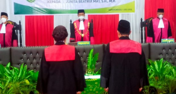 PortalBMR KOTAMOBAGU – Ketua pengadilan tinggi Manado resmi melakukan sumpah pengambilan janji dan serah terima jabatan Pengadilan Negeri Kotamobagu
