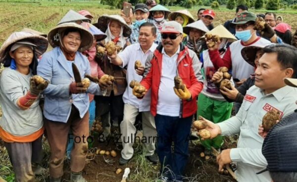 Dalam kesempatan tersebut, sebelum melakukan penanaman kentang dan batang bawang, terlebih dahulu Penjabup Bolmong Ir Limi Mokodompit, melakukan panen Kentang bersama para petani dari desa Sinsingon Beesatu dan desa Manembo.