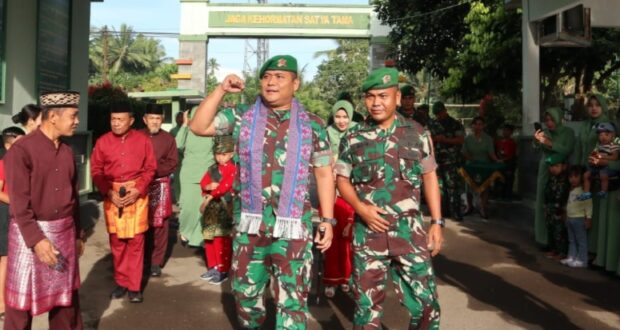 Danyonif 713/ST Letkol Inf Ambariyantomo,S.Hub.Int beserta Ketua Persit Cabang LXX yang didampingi oleh Pasiintel Yonif 713/ST & Pasilog Yonif 713/ST serta para pengurus cabang Persit KCK Cabang LXX Yonif 713 tiba di kompi Senapan C di sambut secara adat kebudayaan Kabupaten Bolaang Mongondow