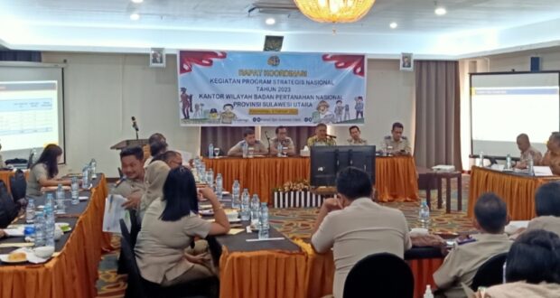 PortalBMR KOTAMOBAGU – Kantor wilayah Badan Pertanahan Nasional (BPN) Sulawesi Utara (Sulut) Senin, 6 Februari 2023 menggelar Rapat Koordinasi (Rakor) Kegiatan Program Strategis Nasional Tahun 2023.