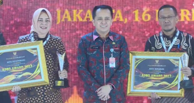 Pemerintah Kota Kotamobagu untuk kedua kalinya kembali menerima penghargaan APBD Award 2023 Kategori Realisasi Belanja Tertinggi TA 2022, dengan masuk peringkat II nasional untuk kategori kota, Kamis (16/3/2023), di Mercure Convention Centre Ancol Jakarta Utara.