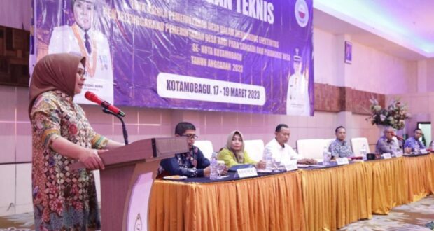PortalBMR KOTAMOBAGU – Wali Kota Kotamobagu Ir. Hj. Tatong Bara membuka secara resmi pelaksanaan Bimbingan Teknis (Bimtek) Tata Kelola Pemerintahan Desa dalam Mendukung Efektifitas Penyelenggaraan Pemerintahan Desa Bagi Para Sangadi dan Perangkat Desa se-Kota Kotamobagu Tahun Anggaran 2023, Sabtu (18/3/2023), di Sutanraja Hotel Kotamobagu.